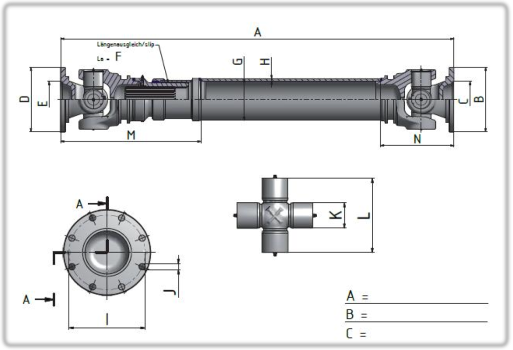 For at vi kan fremstille nye kardanaksler, har vi brug for nogle mål på kardanakslen.